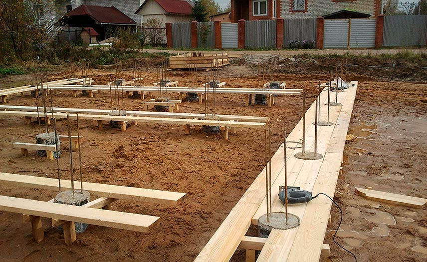 Работы начинают после выполнения геодезического исследования грунта и проведения расчетов. Данные о грунтовых характеристиках и вычисления необходимы для определения глубины заложения, шага установки столбов, количества нужных стройматериалов.