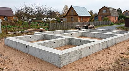 Добиться нужной несущей способности и долговечности можно грамотной гидроизоляцией, а также помещением в заливку арматуры (сетки или каркаса — зависит от толщины фундамента), которая и будет принимать на себя дополнительные нагрузки. В каждом конкретном случае расчеты по размерам армокаркаса или армопояса выполняются индивидуально. Исходя из проектных данных (тип грунта, масса постройки, ветровые и снеговые нагрузки), специалисты вычисляют оптимальный Ø арматурного стержня, размеры ячеек, форму каркаса, а также способ скрепления прутов — это один из самых важных аспектов.