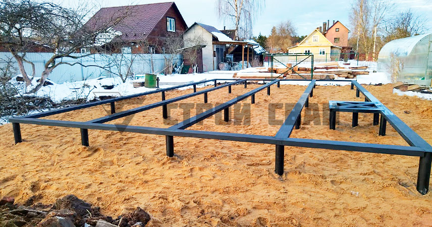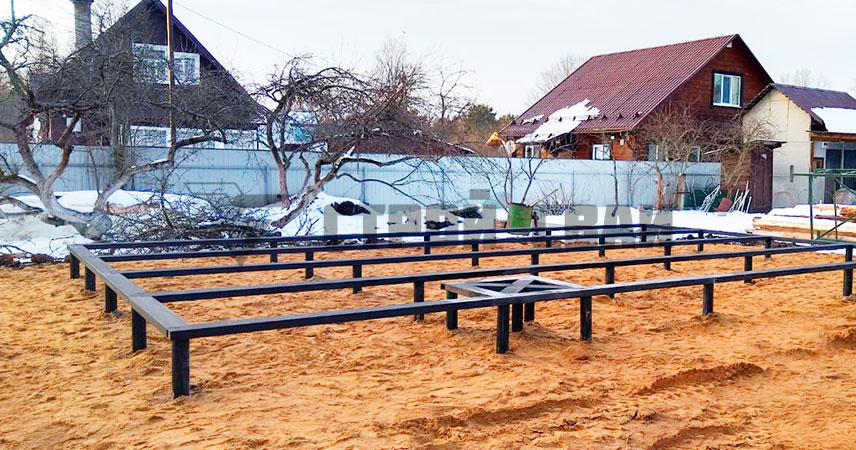 Обвязка горячекатаным швеллером 16 служит для фиксации вертикальных осей свай и распределения нагрузки по опорам более равномерно. Сварные швы выполняются так, чтобы соединение опиралось на вершину сваи. Таким образом, шов не испытывает сгибающих и скручивающих нагрузок.