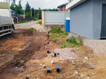 Установка стальных свай под модульный дом